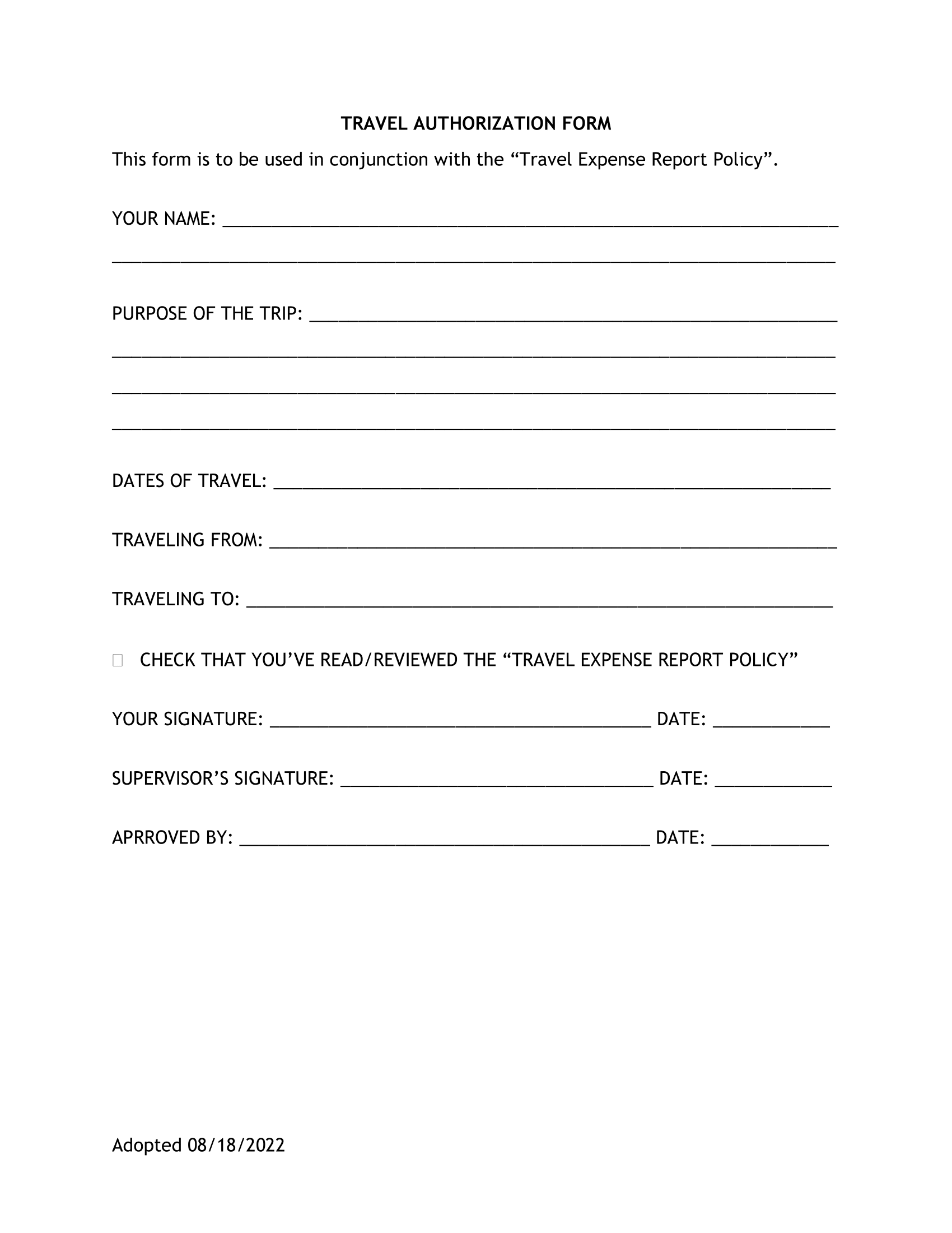 Travel Authorization Form
